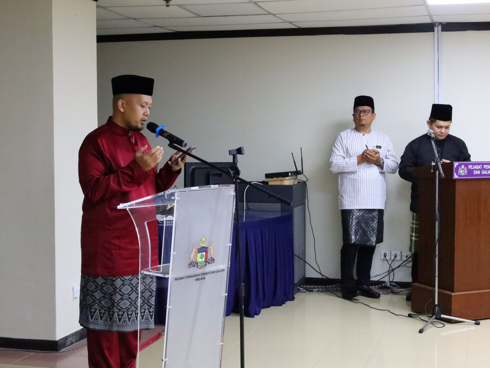 10 April 2026 (Jumaat) – Pejabat Pengarah Tanah dan Galian Melaka telah mengadakan Majlis Bacaan Yasin dan Majlis Amanat Pengarah Bil.2/2026 di Dewan Zamrud. Bacaan Yasin telah dipimpin oleh Saudara Muhammad Farid bin Yunus dengan disertai oleh semua warga kerja Pejabat Pengarah Tanah dan Galian Melaka. Urus setia bagi Majlis Amanat Pengarah ini telah dikelolakan oleh Seksyen Pembangunan Tanah, Seksyen Penguatkuasa dan Seksyen Hasil. Majlis ini juga turut meraikan YBhg. Datuk Anis binti Ali Hasan, Timbalan Pengarah (Pembangunan) yang akan berangkat ke Tanah Suci untuk menunaikan Ibadah Haji. Warga PTG Melaka mendoakan semoga YBhg. Datuk dan suami dipermudahkan urusan serta memperoleh Haji yang Mabrur.